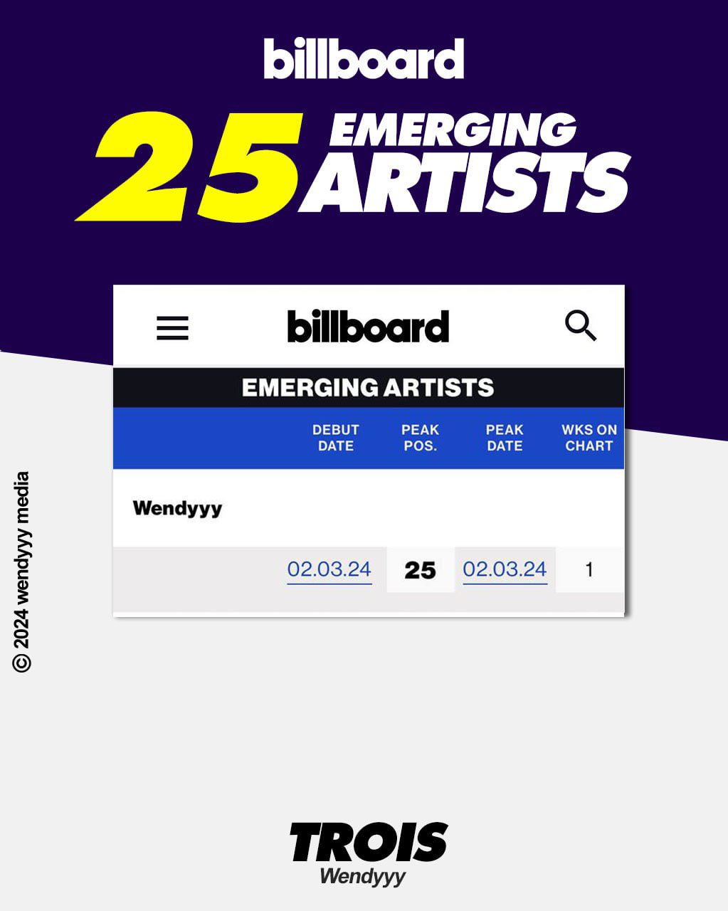 Source : www.billboard.comNALDO FILMMAKER on X: “Wendyyy Album TROIS on billboard #46 TOP